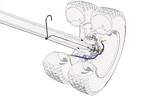 - El aire llega a los neumáticos a través de una tubería especial que va por el interior del eje.